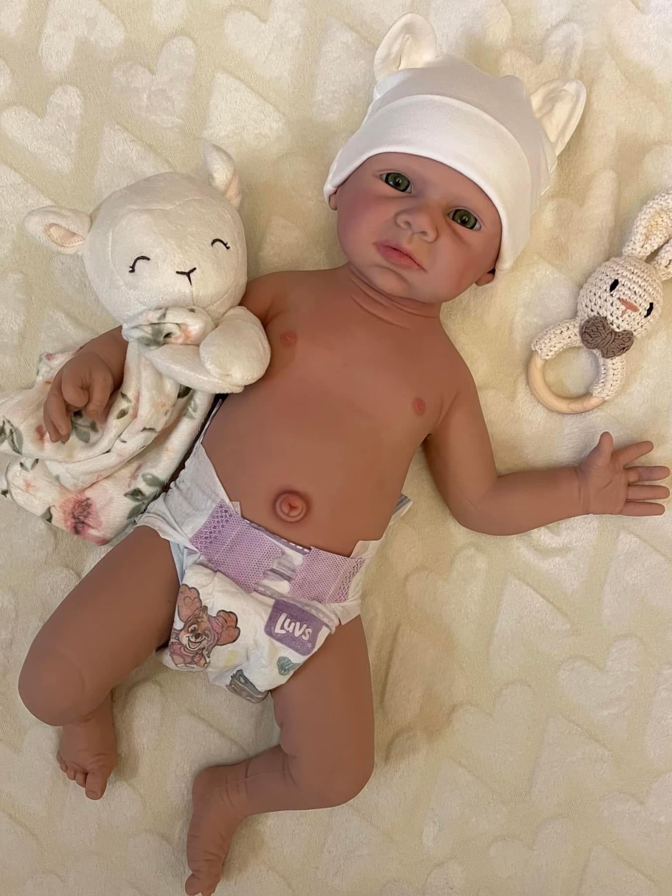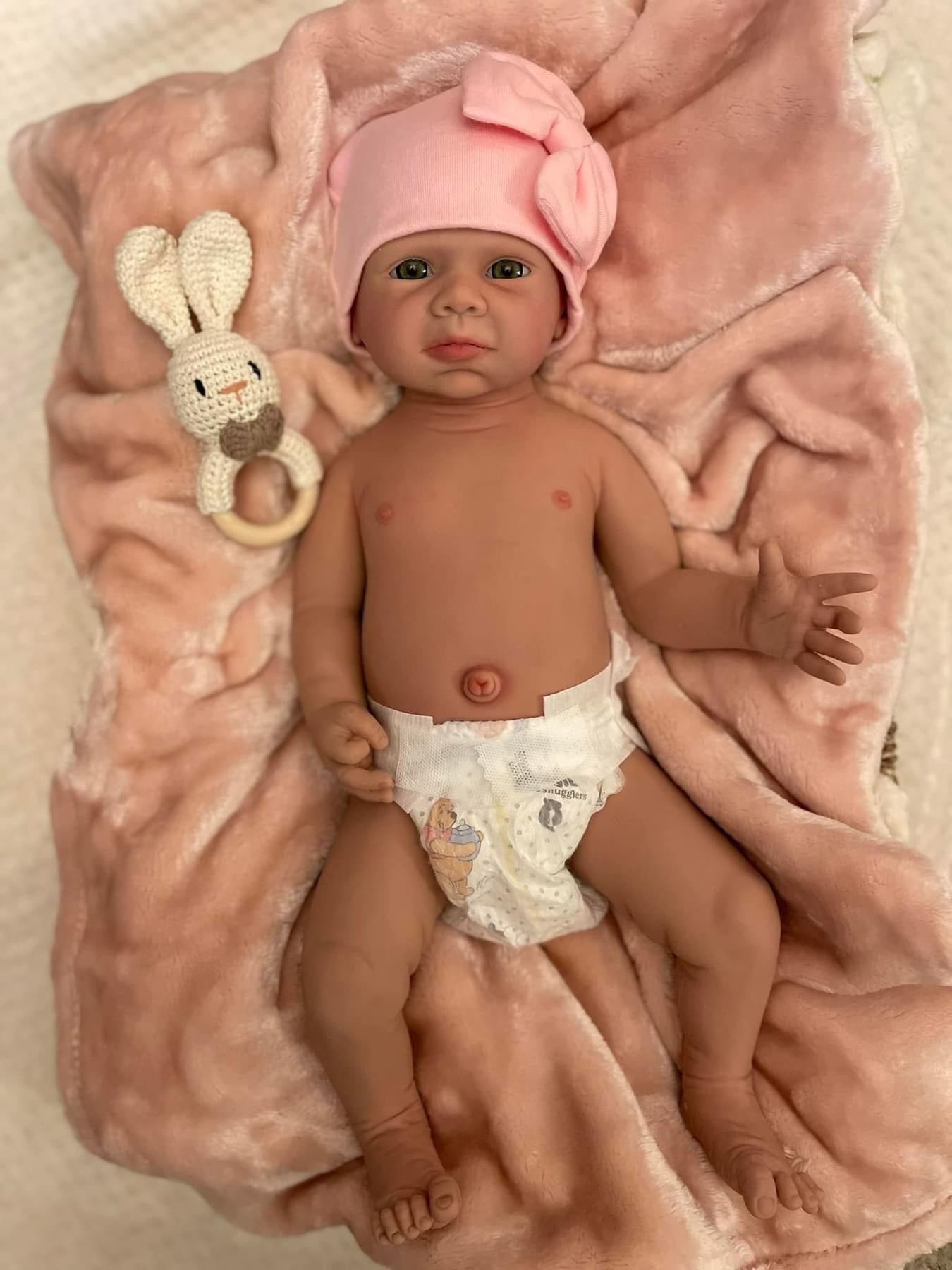 Between her weight and her soft/squishy silicone the feel is SO REAL! Her mouth will be opened to take pacifiers, the body has small seams on arms and head from the silicone mold. This is normal and also not very noticeable.