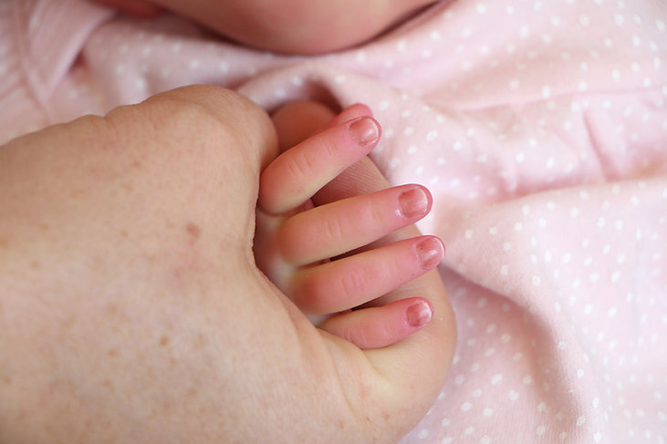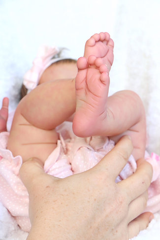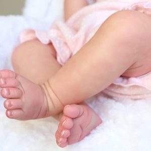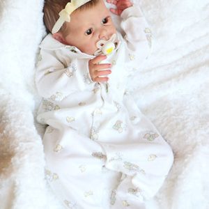 • Baby wears ‘0-3 months’ and ‘3 months’ size clothing.
